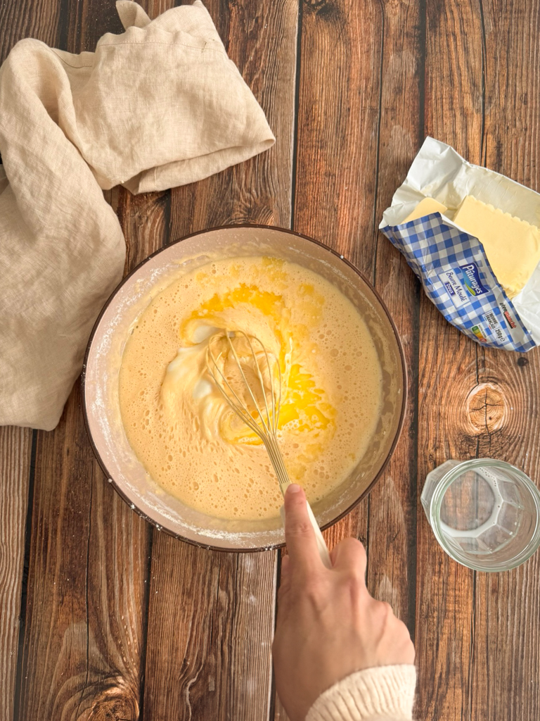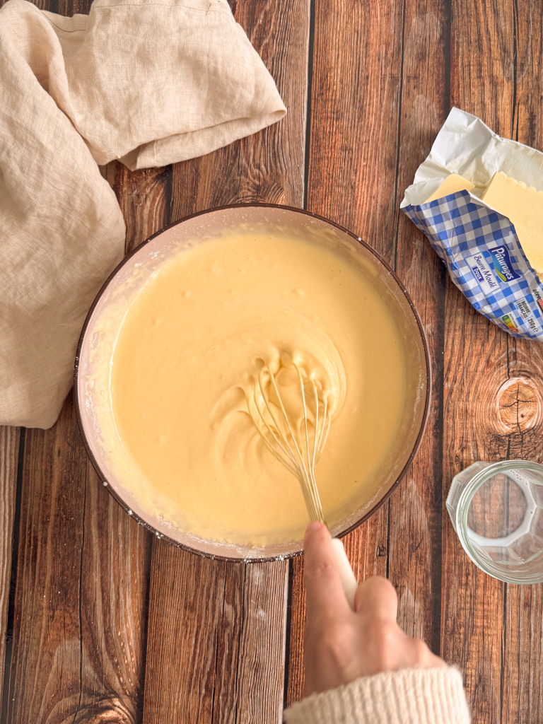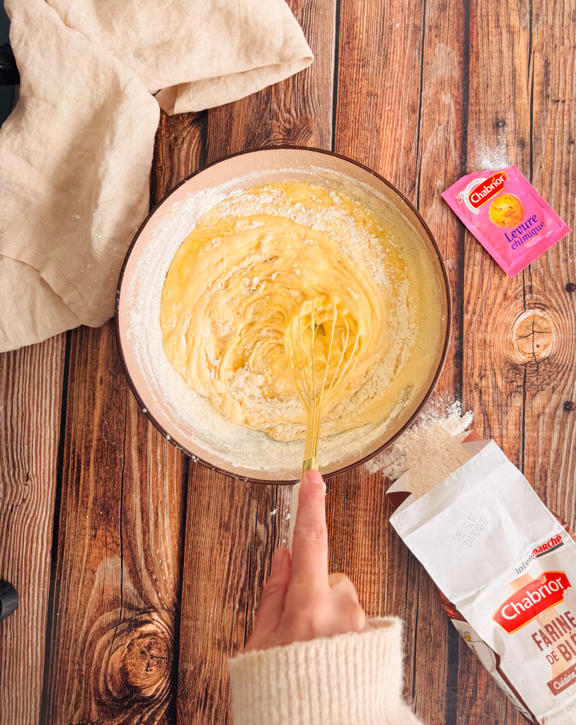 - Pour terminer, ajouter le reste de la farine et mélanger jusqu’à obtention d’une préparation homogène.
